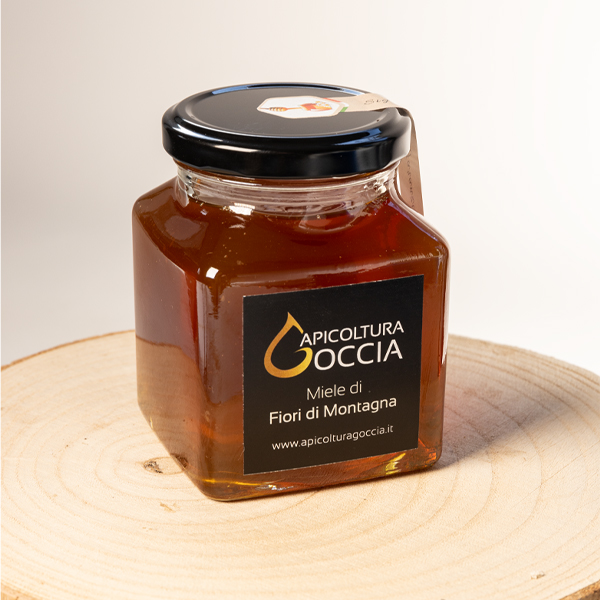 Miele di Fiori di Montagna dal colore ambrato e profumo intenso.